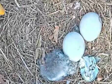 Bald eagles usually space their eggs about three days apart, which means this wasn’t a surprise… unless you’re Irv, who now has to split brooding duties like a dad learning the baby monitor app for the first time.